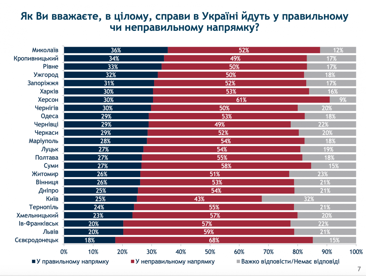 Еще 9% горожан затруднились ответить на этот вопрос. Отметим, что больше всего оптимистов в Николаеве - 36%, а пессимистов во Львове и Северодонецке (только 18 и 20%, соответственно, считают, что все нормально).
