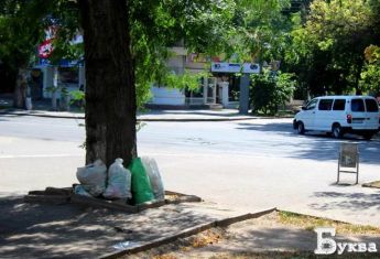 Или вот еще, как вы видите на фото, мешки мусора, украшающие главную магистраль Херсона, - проспект Ушакова.