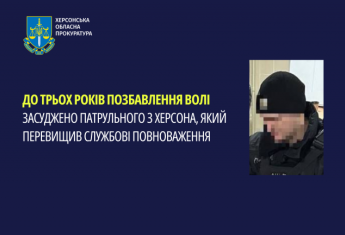 За публічного обвинувачення прокурорів Херсонської обласної прокуратури поліцейського управління патрульної поліції в області визнано винним у перевищенні службових повноважень (ч. 2 ст. 365 КК України).