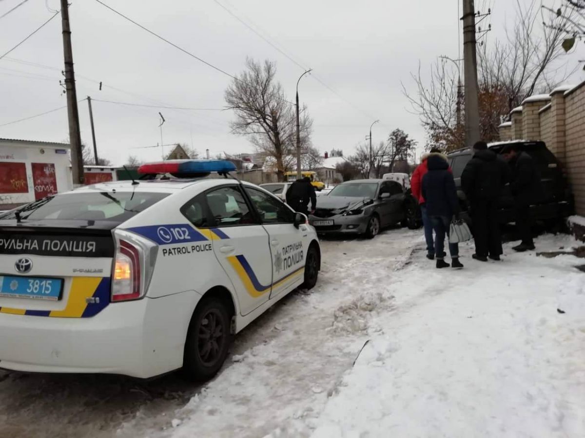 Две машины столкнулись в Херсоне из-за гололеда