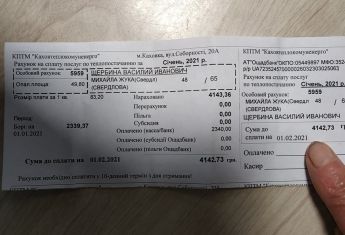 Исходя из квитанции, тариф на отопление составляет 82,3 грн за квадратный метр. Всего насчитано 4143 гривны к оплате. Даже с учетом субсидии (при наличии долгов) ей нужно заплатить 4142 гривны.