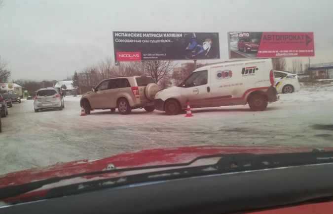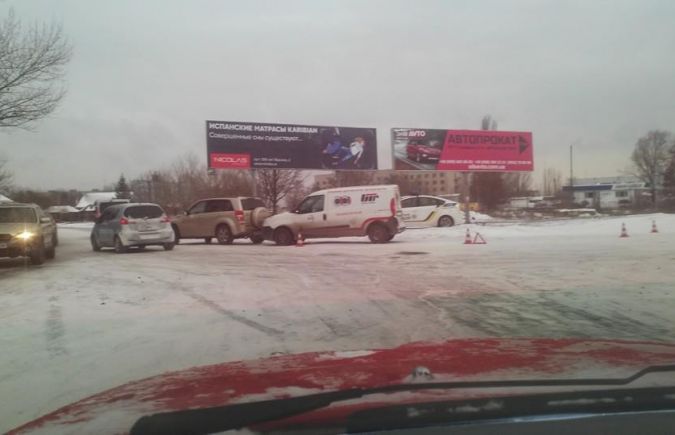 Скользкая дорога стала причиной ДТП на углу проспекта Сенявина и улицы 49-й Гвардейской дивизии. Фото в соцсетях опубликовала Тамила Сулейманова.