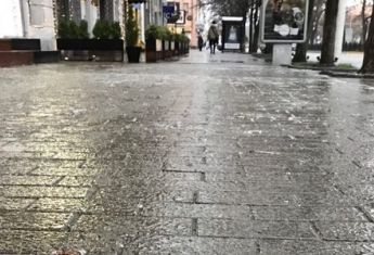 А сегодня, 19 декабря, днем еще и пошел дождь. Капли воды, падая на асфальт и землю, моментально замерзают. Поэтому город медленно, но уверенно превращается в каток.