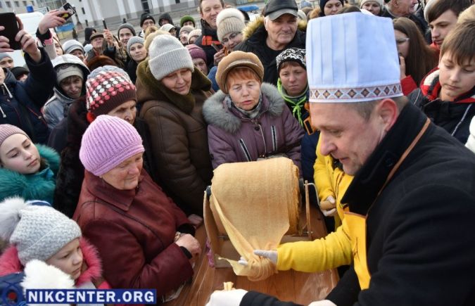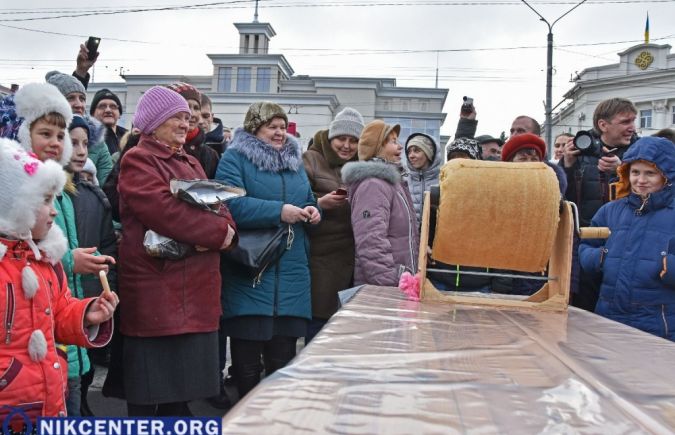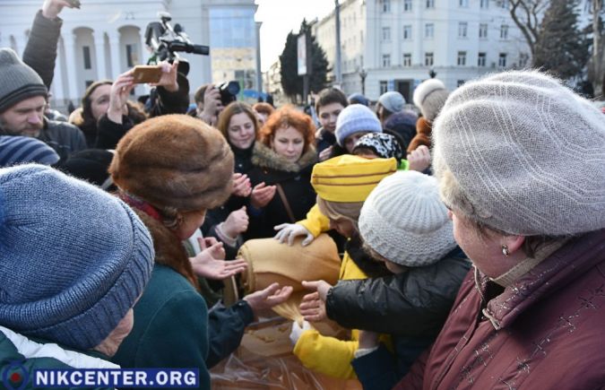 Во время раздачи 40-метрового блина, испеченного по случаю начала празднования Масленицы, херсонцы устроили давку.