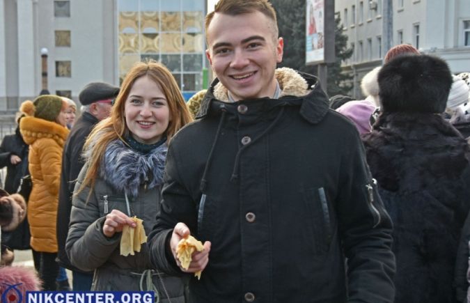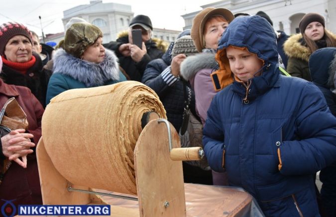 Блин был представлен и роздан во время народного гулянья на площади Свободы в центре города. Испекли блин на одном из городских предприятий пищевой промышленности. Раздачу начал и. о. первого заместителя главы Херсонской ОГА Дмитрий Бутрий.