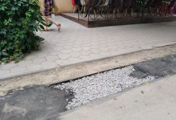 «У кафе "Корица" рядом с Центральным рынком долго и нудно асфальтировали узкую траншею метров до 100. И как вишенку на тортике, оставили вот этот кусок с гравием длиной в метр».