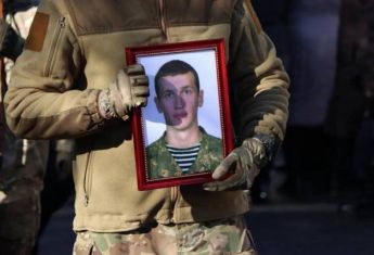 На улицы Горностаевки вышло более тысячи людей, чтобы провести в последний путь героя Артема Скупейко, который погиб при выполнении боевого задания под Мариуполем.