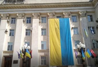 Перед зданием Херсонской ОГА 24 августа вывесили, наряду с Государственным флагом Украины, красно-черный флаг. Об этом написал в Фейсбуке депутат городского совета Виталий Урбанский.