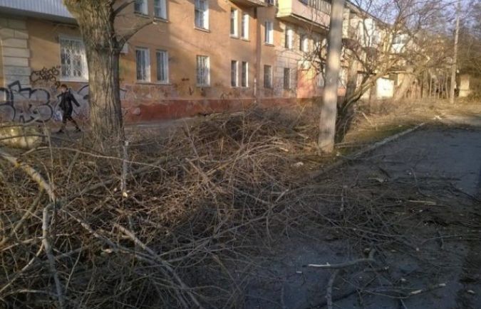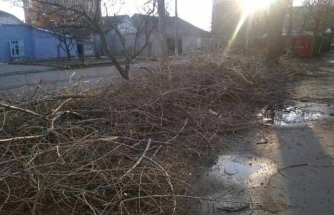 Так, на улице Гмырева рабочие спилили сухие аварийные деревья и оставили после себя кучи веток.