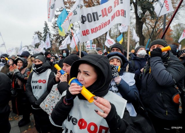 Херсонские предприниматели собираются митингов под мэрией Херсона в день проведения заседания сессии горсовета 26 февраля.