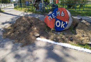 «Декоративное панно - "пеньОк", просим горсовет должным образом благоустроить, или переместить композицию в Ботанический сад ХГУ, в течении 2 недель, иначе остальные пни начнем расписывать "грустными" портретами мера Володимир Миколаенко», – говорится в посте.