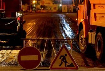В Херсоне ночью кладут асфальт на парковке возле здания Укрпочты на Бериславском шоссе.