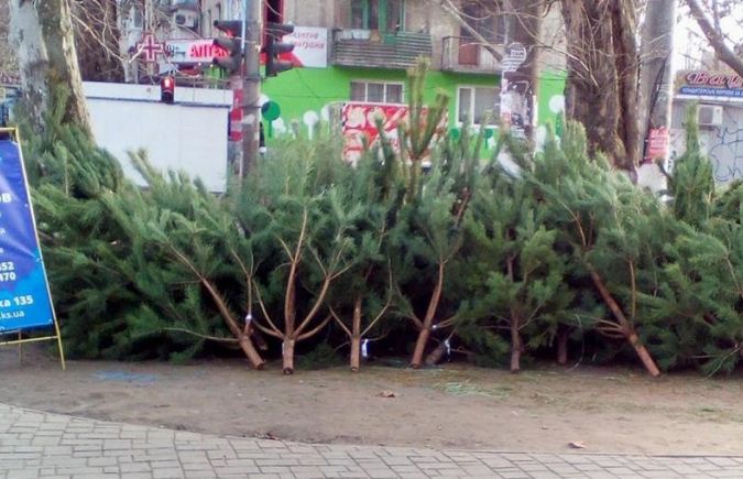Ближе к ул. Кулика продают живые сосны от 100 грн. и выше. На вопрос откуда эти елки, продавщица ответила – «цюрупинские».