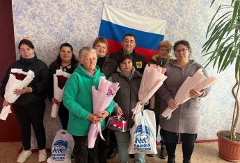 Матерям колаборантів вручили квіти і сказали слова «безмежної подяки». «Всі ці жінки чекають своїх синів з фронту», – написали пропагандисти.