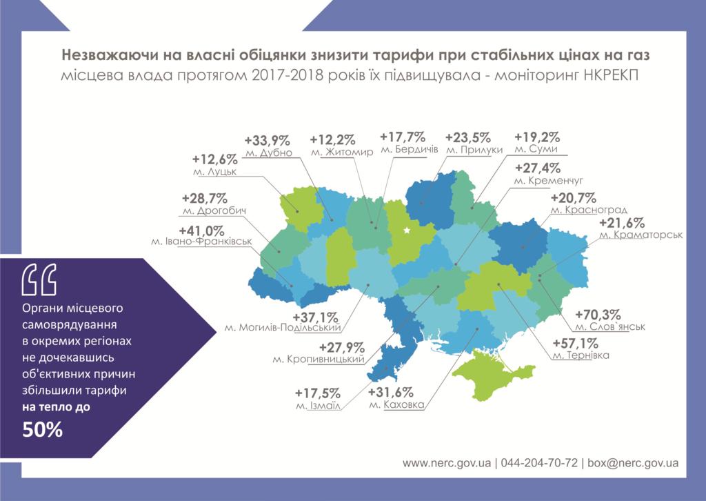 В Украине еще до решения о повышении цены на газ в десятках городов по решению местной власти значительно повысили тарифы на отопление. Подорожание составило от 12% до более 70%.