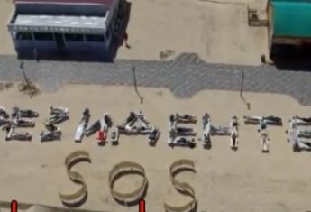 На видео видно, что люди образовали из собственных тел слово «Президент», рядом выложено слово «SOS».