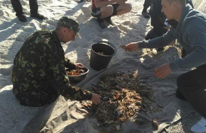 С помощью двух сетей без надлежащих разрешительных документов браконьеры выловили 1800 креветок, 480 рыбин атерины и бычка, а также 140 крабов, которые занесены в Красную книгу Украины.