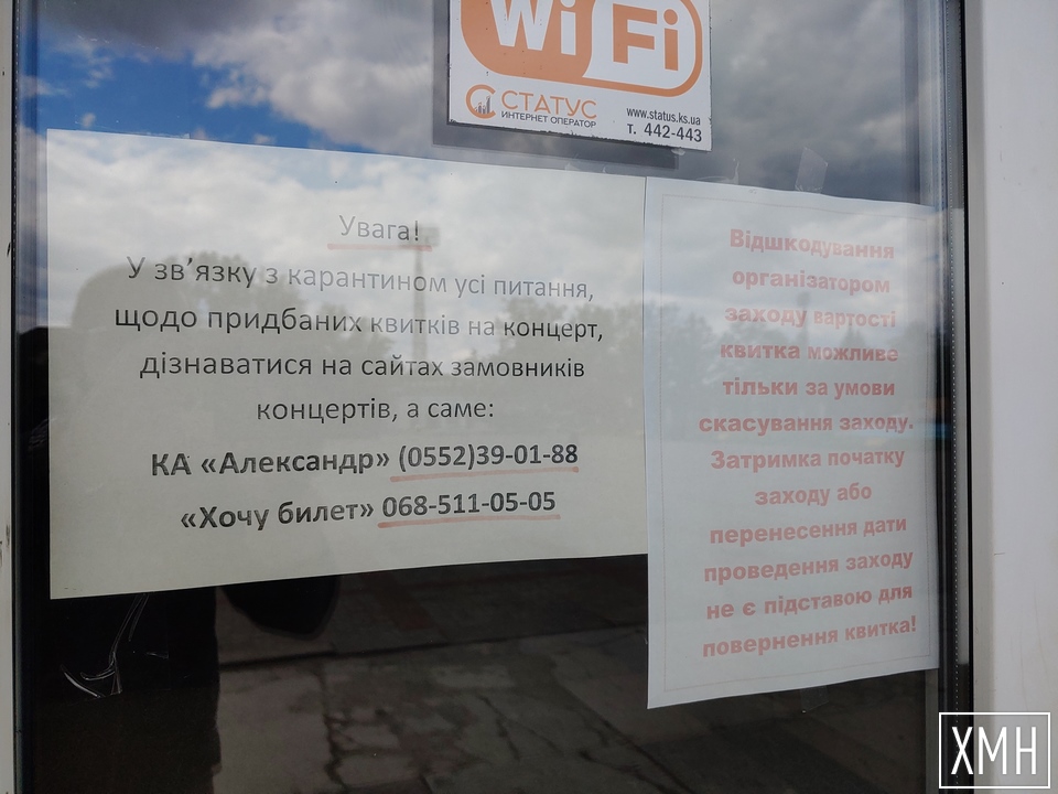 В Херсоне на входе в в ККЗ «Юбилейный» висит объявление по поводу несостоявшихся концертов.