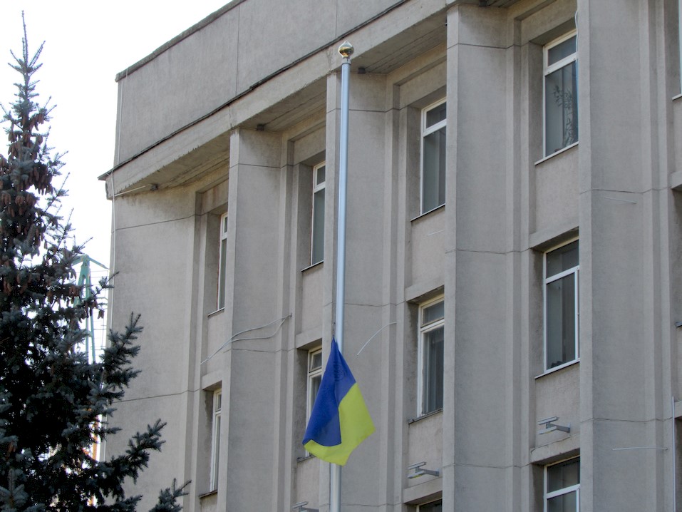 На здании продолжает висеть плакат «Вибачте, так а хто замовив Гандзюк?».