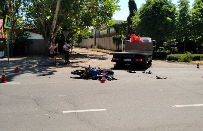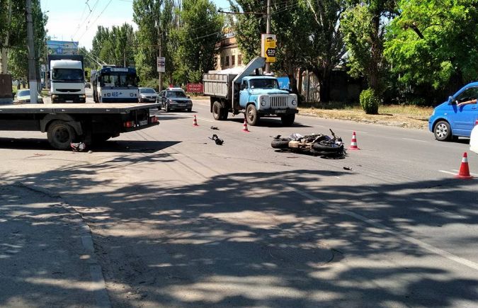 По словам херсонца Сергея Бутенко, мотоциклист совершал обгон через двойную сплошную и столкнулся с эвакуатором, который выполнял поворот налево.