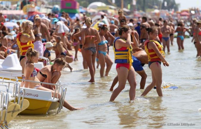 Курортный сезон на побережьях Херсонщины идет полным ходом. Сегодня найти свободное место на пляжах курортного Железного порта несколько проблематично. Запоздавшим на пляж отдыхающим, нужно потратить некоторое время, чтобы найти свободное место для своих подстилок. Люди стелятся вплотную друг к другу. Немного свободнее в так называемых «зонах платных услуг», но VIP отдыхающих тоже хватает.