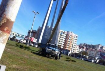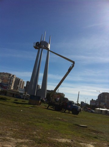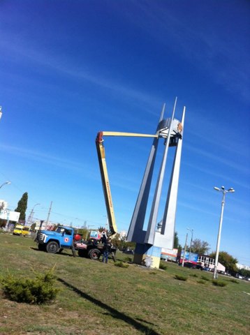 Монумент «Три штыка» находится на Каховской площади. Вопрос о его демонтаже поднимал в январе депутат горсовета Херсона от «Свободы» Виталий Урбанский.