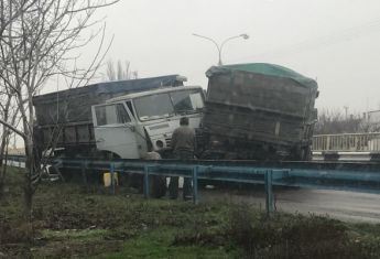 Только что на трассе под Чернобаевкой столкнулись два грузовика.