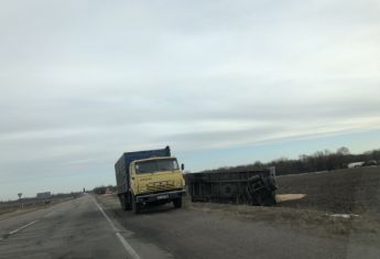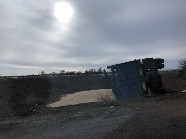 На въезде в Каховку прицеп слетел с трасиСьогодни, 16 января, около Каховки на объездной дороге прицеп с зерном слетел с трассы.