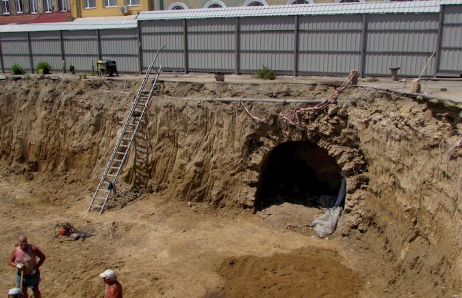 Мы сообщали, что в Херсоне на стройке на перекрестке ул. Советской и Октябрьской революции в котловане раскопали вход в подземелье и предполагают, что это катакомбы.
