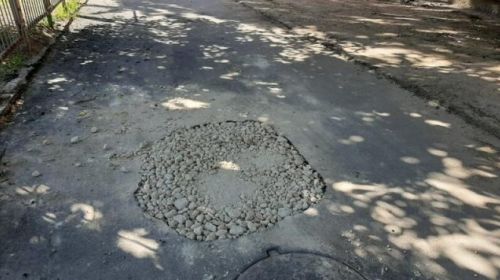 Херсонец Сергей Ильин недавно опубликовал фото, как на новом асфальте в центре города на проспекте Ушакова, 79 возле люка...