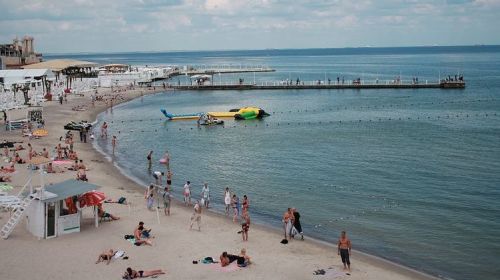 На курорте Коблево уже вовсю стартовал туристический сезон. Людей на пляже достаточно, но вот вода в море оставляет желать...