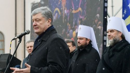Президент Украины Петр Порошенко во время выступления на площади возле Спасо-Преображенского Кафедрального Собора в Виннице в...