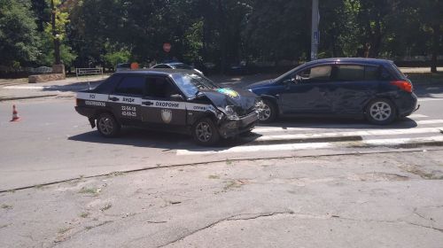 На улицах Херсона очередное ДТП с участием автомобиля охранной фирмы. Авария произошла в мкр. Шуменский, на перекрестке ...
