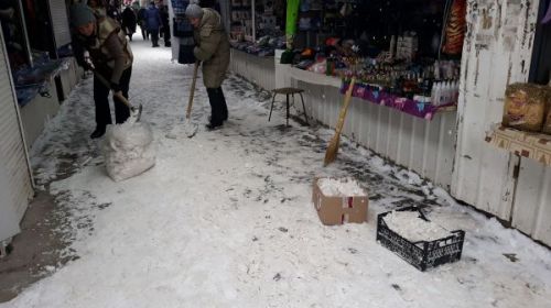 В Херсоне на Шуменском рыночники пытаются справиться с последствиями снегопада. Торговцы чистят снег и выносят с...
