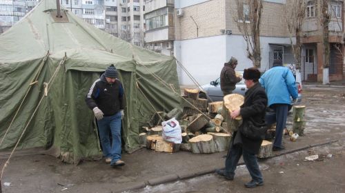 В Херсоне сегодня очень холодно, идет снег. В центре строит бездомный Андрей, он просит милостыню. Стоит без шапки, потому...