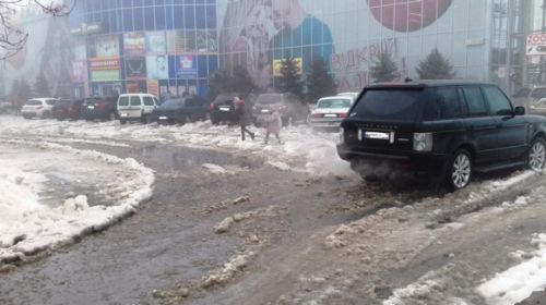 Уборщики территорий работают, но и им призодится разрываться между затопленной парковкой и ... потекшей крышей. Обильные осадки...
