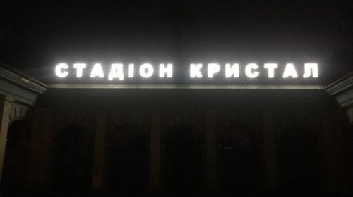 Сегодня вечером впервые зажгли новые буквы на входе в городской стадион «Кристалл».Вскоре будет окончена...