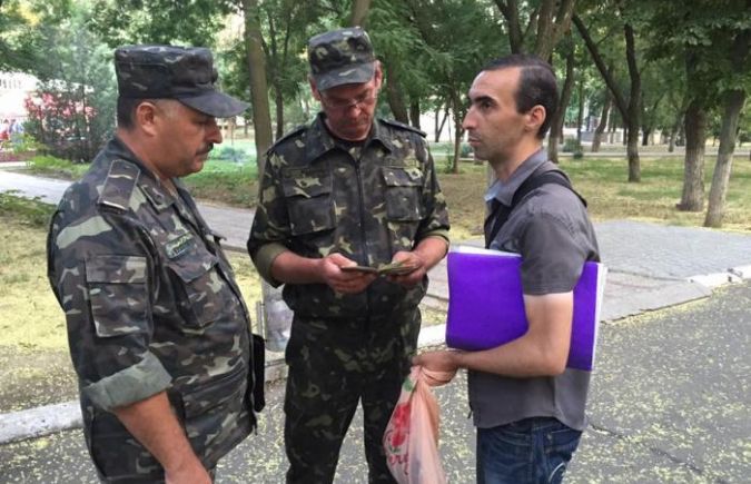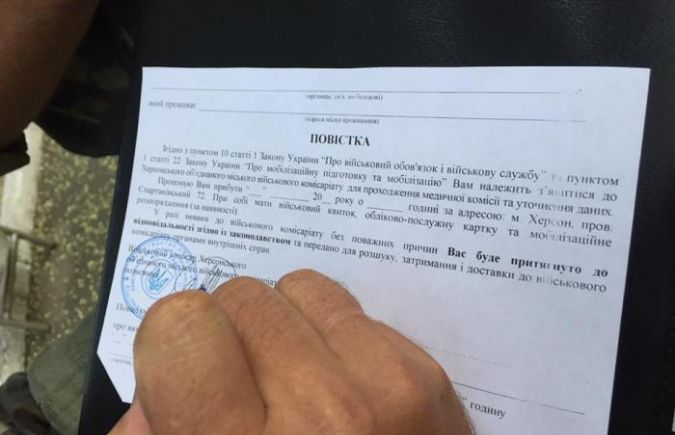 Вчера в Херсоне во время патрулирования города работники военкомата раздавали прохожим повестки в армию.