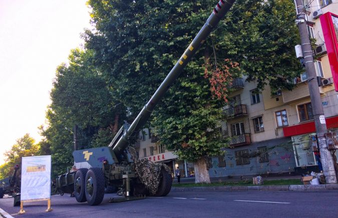 Сегодня в Херсоне на площади Свободы по случаю празднования Дня Независимости проходит выставка военной техники.