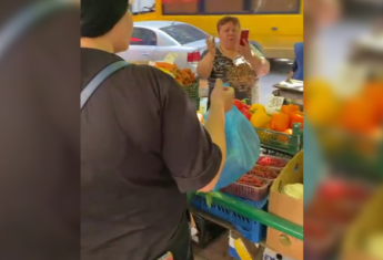 Со слов Захарова, торговля на данном участке ведется с нарушениями закона: покупателей обвешивают на 20-30 гривен из 100. Неточности в весе активист подтвердил сделав "контрольные весы" гирей, предварительно закупив продукции.