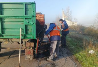 «У Херсонській області триває масштабне оновлення дорожньої інфраструктури, – бреше окупаційний телеканал «Таврия». – Особливу увагу приділяють увагу місцям, якими їздить громадський транспорт». Як насправді виглядає те «масштабне оновлення», показала у своєму телеграм-каналі окупаційна адміністрація Каховського «муніципального округу». На фото бачимо дорожників, які лопатами з причепу скидають на дорогу незрозумілу суміш, а потім тими ж лопатами її розрівнюють. «На маршрутах шкільних автобусів працівники «Комунального сервісу» Каховки підсипають ями і нерівності асфальтною крихтою», – прокоментувала фото окупаційна адміністрація.