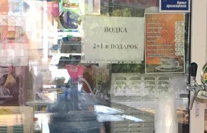 "Как вам акция? )) Тема МАФов уже надоела, правда, и казалось бы, только глаза привыкли к этому по-европейски продуманному ларьку (остановка Променад-Плаза), но эта акция... «купи две водки, третья в подарок».