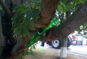 Пример тому – снимок, сделанный на днях фотокорреспондентом «Гривны» на территории аэропорта «Херсон». Кто-то явно не при здравом уме вставил стеклянную бутылку из-под пива между ветками молодого клена, вместо того чтобы выбросить в урну.