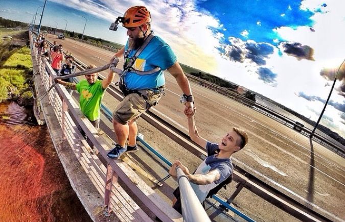 Херсонские экстремалы прыгают с Антоновского моста.