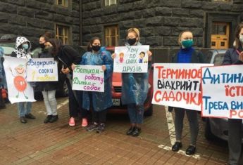 Протестующие требуют открыть детсады уже с 22 мая. Кабмин же рассматривает возможность разрешить их работу с 25 мая.