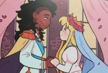 "Принцесса + принцесса: долго и счастливо" - это комикс о романтических отношениях между двумя девушками. Книга, как отмечается, направленная на преодоление так называемых стереотипных представлений о человеческих взаимосвязях.