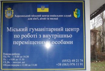 В центре Херсона на улице. 295-й Гвардейской Дивизии находится городской гуманитарный центр по работе с внутренне перемещенными лицами. Он координирует свою деятельность с рядом украинских и зарубежных общественных организаций.
