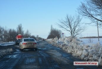 Когда выезжаешь из Николаева никаких неприятностей не ждешь — нормальная сухая дорога, такая же, как и летом. «Сухой асфальт» на трассе Ульяновка-Николаев тянется вплоть до Первомайска: никаких ограничений скоростного режима кроме, разумеется, тех, которые предусмотрены Правилами дорожного движения, проезжая часть нигде не сужена.