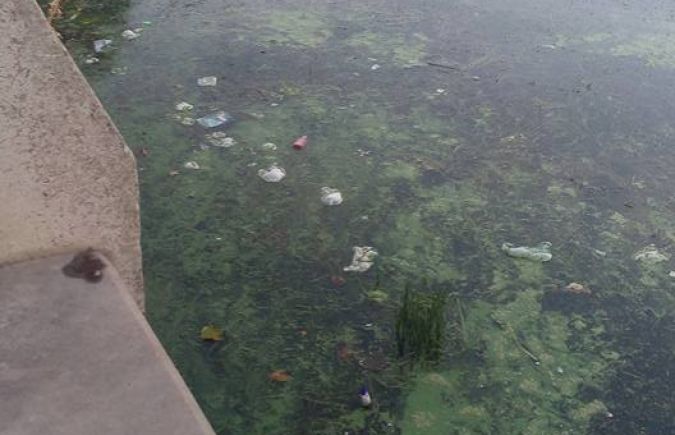 В парке кучи мусора, оставленные посетителями (мусор даже в воде).