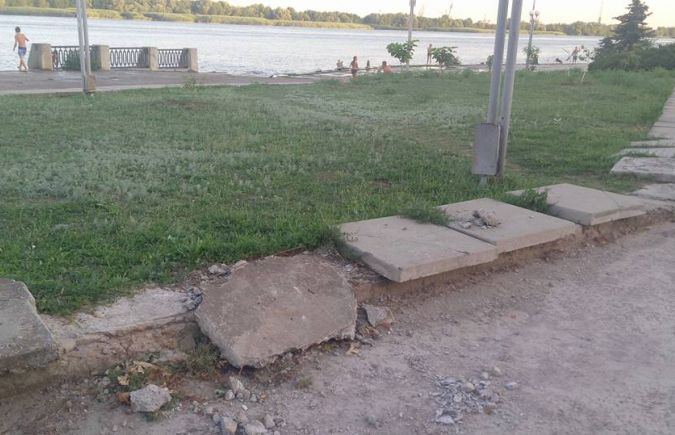 «Трава по пояс, парапеты и плитка разрушены, ни клумбочки, ни скамеечки, такое впечатление, что прогулка по Чернобылю».